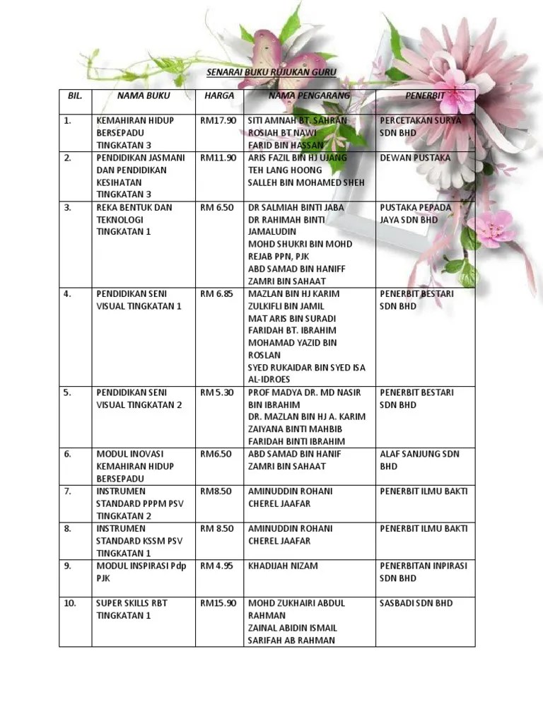 Senarai buku teks tingkatan 1. Tajuk buku penerbitan jaya bakti kod buku harga (rm) 1 bahasa melayu dewan bahasa dan pustaka ft011001 13.20 2 destinasi. Reka bentuk dan teknologi tingkatan 1. Sebaiknya cetakan berwarna dan bukan . Buku teks reka bentuk dan dr salmiah bt jaba jaya sdn bhd teknologi tingkatan 1 dr rahimah bt jamaludin Selari dengan perkembangan pesat teknologi digital, .